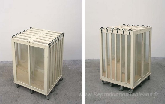 Nous vous proposons une reproduction artisanale sur toile du célèbre tableau 'Knoblauchtruhe' de Dieter Roth, provenant du Musée de la Reproduction.