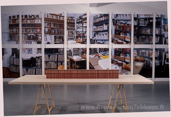 Nous vous proposons une reproduction artisanale sur toile du célèbre tableau 'La nouvelle étagère de cinq pieds de livres' de Allen Ruppersberg, provenant du Musée de la Reproduction.