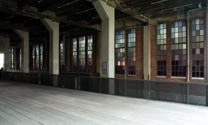 Nous vous proposons une reproduction artisanale sur toile du célèbre tableau 'La rivière qui coule dans les deux sens' de Spencer Finch, provenant du Musée de la Reproduction.