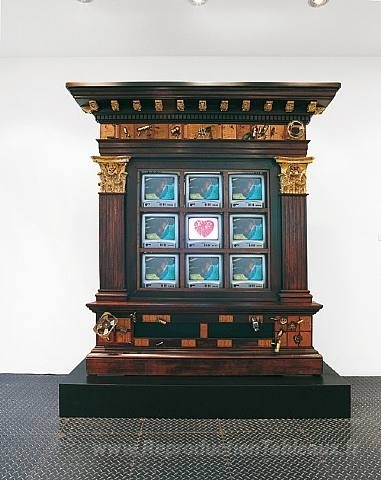 Nous vous proposons une reproduction artisanale sur toile du célèbre tableau 'La télévision est un nouveau cœur' de Nam June Paik, provenant du Musée de la Reproduction.