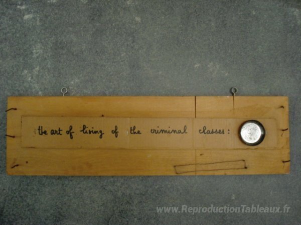 Nous vous proposons une reproduction artisanale sur toile du célèbre tableau 'L'art de vivre des classes criminelles' de Robert Filliou, provenant du Musée de la Reproduction.