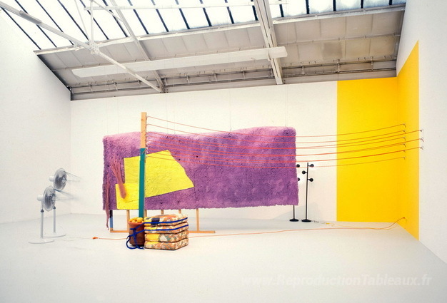 Nous vous proposons une reproduction artisanale sur toile du célèbre tableau 'Lié à un arc au milieu (# 273)' de Jessica Stockholder, provenant du Musée de la Reproduction.