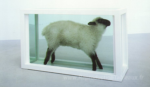 Nous vous proposons une reproduction artisanale sur toile du célèbre tableau 'Loin du troupeau' de Damien Hirst, provenant du Musée de la Reproduction.