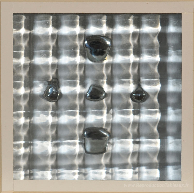Nous vous proposons une reproduction artisanale sur toile du célèbre tableau 'Mercuriale' de Grazia Varisco, provenant du Musée de la Reproduction.