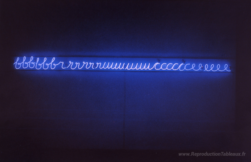 Nous vous proposons une reproduction artisanale sur toile du célèbre tableau 'Mon nom comme s'il avait été écrit à la surface de la lune' de Bruce Nauman, provenant du Musée de la Reproduction.