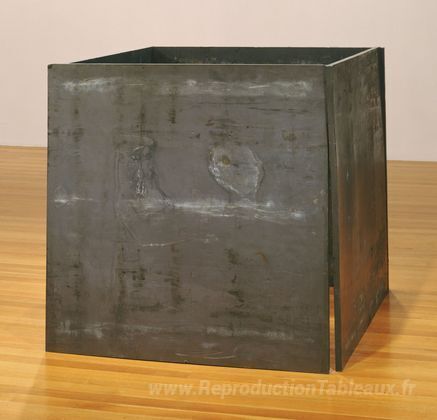 Nous vous proposons une reproduction artisanale sur toile du célèbre tableau 'One Ton Prop (maison de cartes)' de Richard Serra, provenant du Musée de la Reproduction.