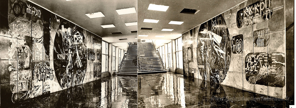 Nous vous proposons une reproduction artisanale sur toile du célèbre tableau 'Panneaux muraux' de Romul Nutiu, provenant du Musée de la Reproduction.