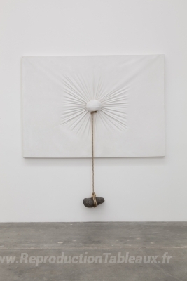 Nous vous proposons une reproduction artisanale sur toile du célèbre tableau 'Phase du néant-noué et de la pierre' de Nobuo Sekine, provenant du Musée de la Reproduction.