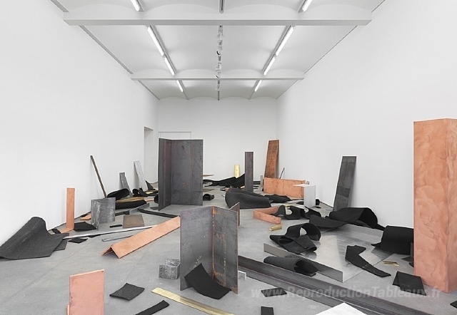 Nous vous proposons une reproduction artisanale sur toile du célèbre tableau 'Pièce de dispersion' de Robert Morris, provenant du Musée de la Reproduction.