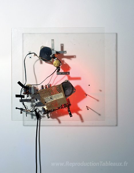 Nous vous proposons une reproduction artisanale sur toile du célèbre tableau 'Radio WNYR Nr. 15' de Jean Tinguely, provenant du Musée de la Reproduction.