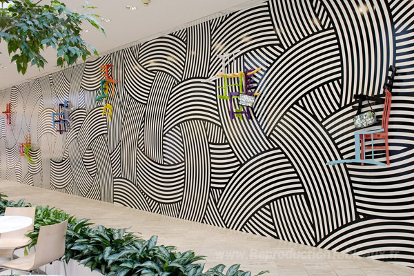 Nous vous proposons une reproduction artisanale sur toile du célèbre tableau 'RSVPmfa' de Jim Lambie, provenant du Musée de la Reproduction.
