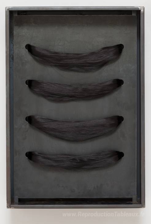 Nous vous proposons une reproduction artisanale sur toile du célèbre tableau 'Sans titre (cheveux)' de Jannis Kounellis, provenant du Musée de la Reproduction.