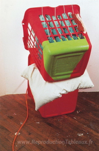 Nous vous proposons une reproduction artisanale sur toile du célèbre tableau 'Sans titre' de Jessica Stockholder, provenant du Musée de la Reproduction.