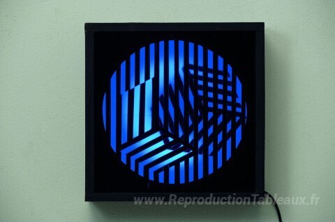Nous vous proposons une reproduction artisanale sur toile du célèbre tableau 'Schéma Luminoso Variabile R. Cubo' de Grazia Varisco, provenant du Musée de la Reproduction.