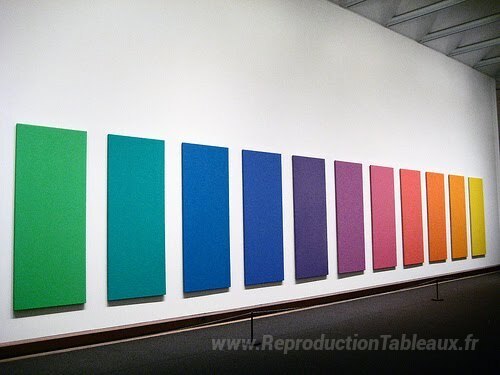 Nous vous proposons une reproduction artisanale sur toile du célèbre tableau 'Spectre V' de Ellsworth Kelly, provenant du Musée de la Reproduction.