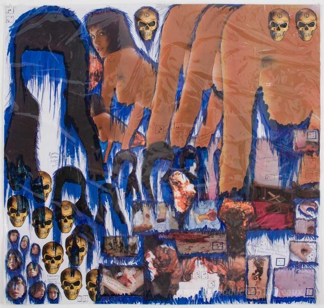 Nous vous proposons une reproduction artisanale sur toile du célèbre tableau 'Tattoo-Serie: Questions embarrassantes' de Thomas Hirschhorn, provenant du Musée de la Reproduction.