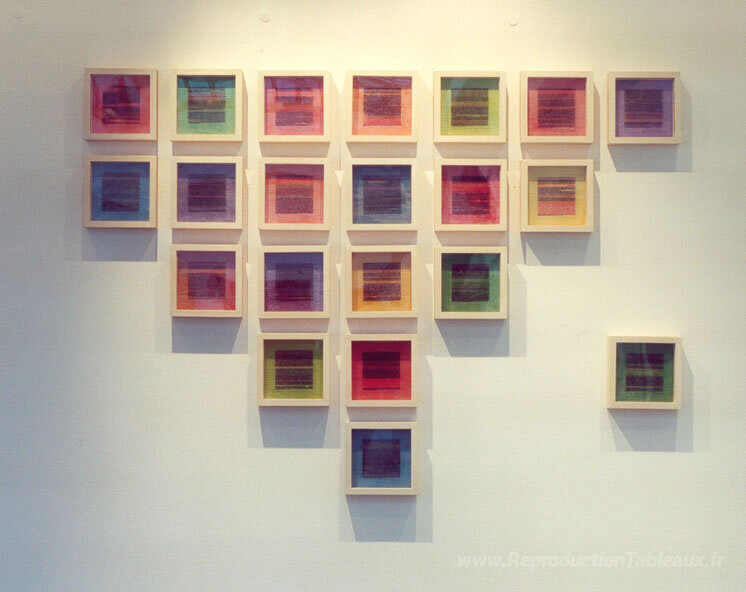 Nous vous proposons une reproduction artisanale sur toile du célèbre tableau 'Untitled (Lettres)' de Moon-Pil Shim, provenant du Musée de la Reproduction.