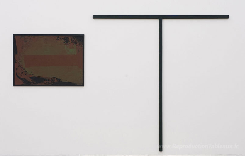 Nous vous proposons une reproduction artisanale sur toile du célèbre tableau 'untitled (T-formiges Objekt mit Guazzo)' de Blinky Palermo, provenant du Musée de la Reproduction.