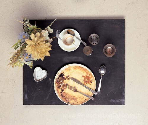 Nous vous proposons une reproduction artisanale sur toile du célèbre tableau 'Variation des repas - consommée par Roy Lichtenstein' de Daniel Spoerri, provenant du Musée de la Reproduction.