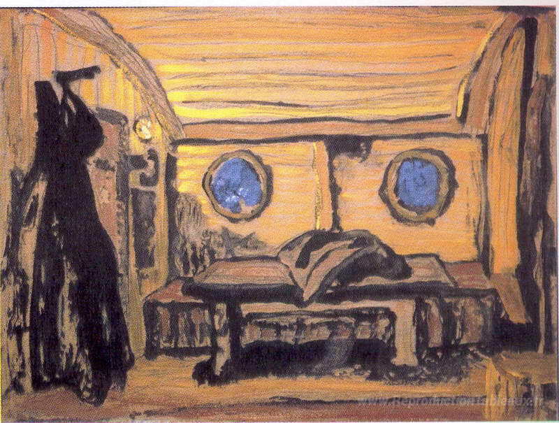 Nous vous proposons une reproduction artisanale sur toile du célèbre tableau 'Cabine' de Nicholas Roerich, provenant du Musée de la Reproduction.