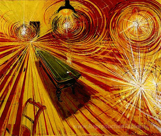 Nous vous proposons une reproduction artisanale sur toile du célèbre tableau 'Café de nuit' de Brett Whiteley, provenant du Musée de la Reproduction.