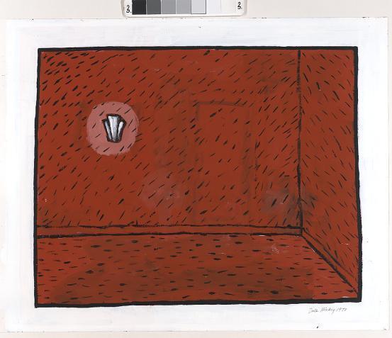 Nous vous proposons une reproduction artisanale sur toile du célèbre tableau 'Chambre avec lampe à coquille' de Dale Hickey, provenant du Musée de la Reproduction.