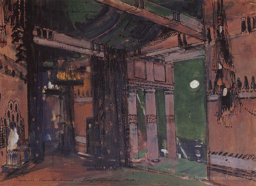 Nous vous proposons une reproduction artisanale sur toile du célèbre tableau 'Chambre de salambo' de Konstantin Korovin, provenant du Musée de la Reproduction.