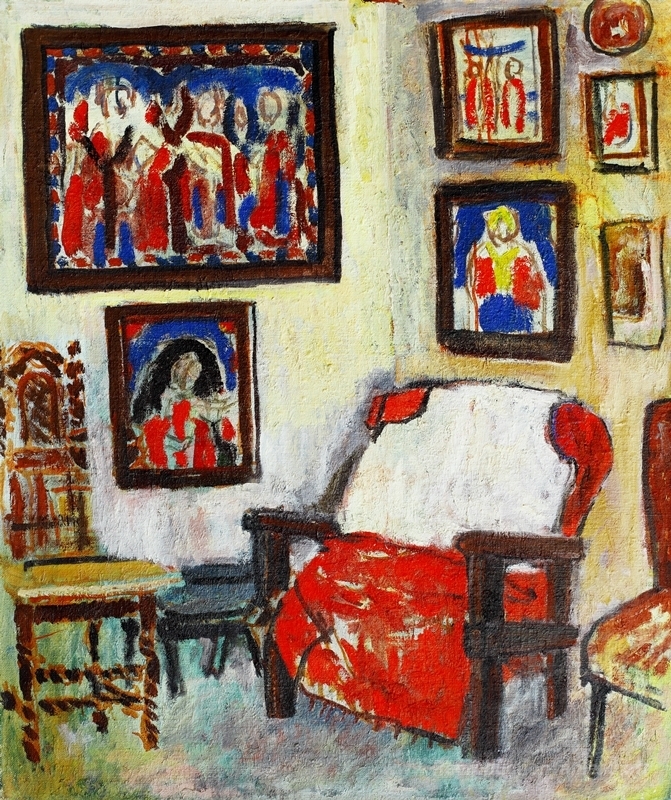 Nous vous proposons une reproduction artisanale sur toile du célèbre tableau 'Coin de studio' de George Stefanescu-Ramnic , provenant du Musée de la Reproduction.