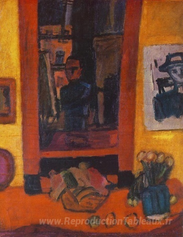 Nous vous proposons une reproduction artisanale sur toile du célèbre tableau 'Dans l'atelier' de Bela Czobel, provenant du Musée de la Reproduction.