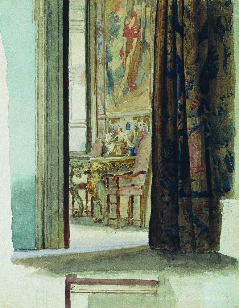 Nous vous proposons une reproduction artisanale sur toile du célèbre tableau 'Fragment de l'intérieur' de Fyodor Bronnikov, provenant du Musée de la Reproduction.