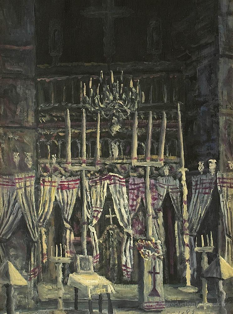 Nous vous proposons une reproduction artisanale sur toile du célèbre tableau 'Iconostase' de Horia Bernea, provenant du Musée de la Reproduction.