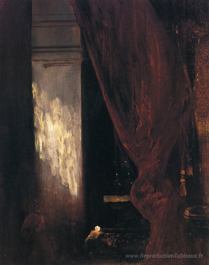 Nous vous proposons une reproduction artisanale sur toile du célèbre tableau 'Intérieur d'une chapelle' de Eugene Delacroix, provenant du Musée de la Reproduction.