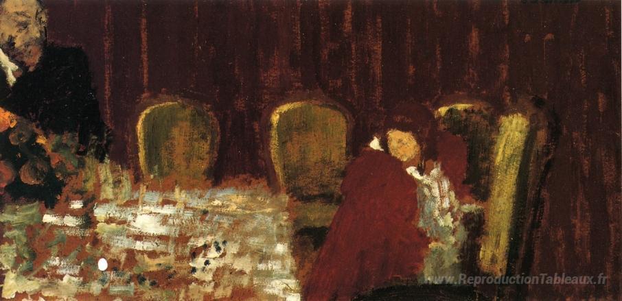 Nous vous proposons une reproduction artisanale sur toile du célèbre tableau 'La salle à manger' de Edouard Vuillard, provenant du Musée de la Reproduction.