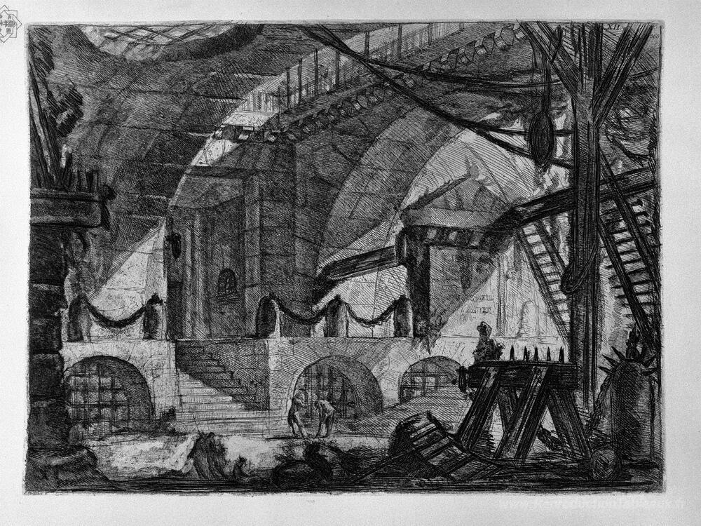 Nous vous proposons une reproduction artisanale sur toile du célèbre tableau 'Le cheval de scie' de Giovanni Battista Piranesi, provenant du Musée de la Reproduction.