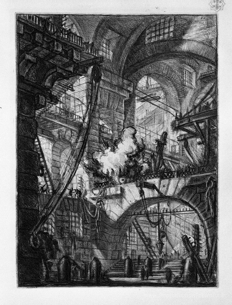 Nous vous proposons une reproduction artisanale sur toile du célèbre tableau 'Le feu fumé' de Giovanni Battista Piranesi, provenant du Musée de la Reproduction.