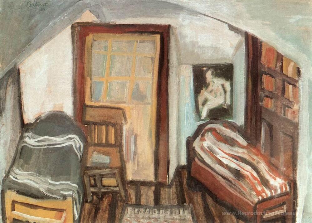 Nous vous proposons une reproduction artisanale sur toile du célèbre tableau 'Ma chambre à la Bindendorfs' de Endre Balint, provenant du Musée de la Reproduction.