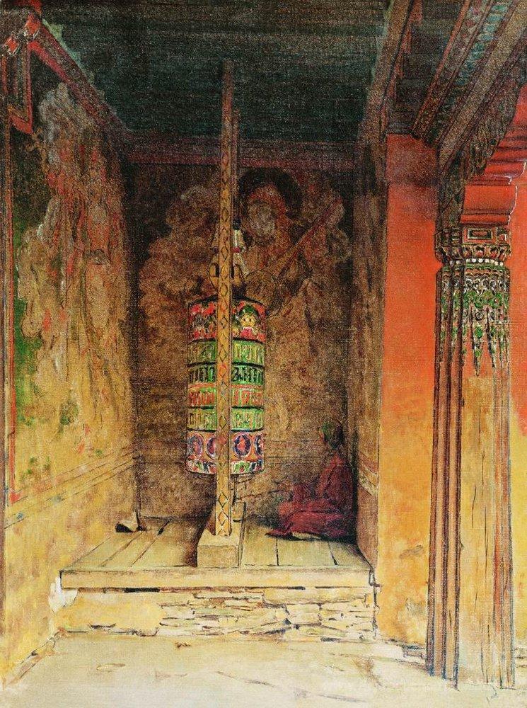 Nous vous proposons une reproduction artisanale sur toile du célèbre tableau 'Machine de prière bouddhiste' de Vasily Vereshchagin, provenant du Musée de la Reproduction.
