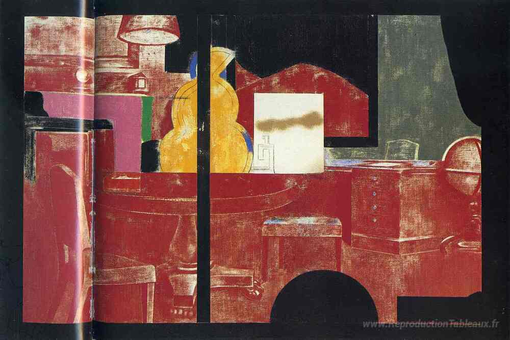 Nous vous proposons une reproduction artisanale sur toile du célèbre tableau 'Meurtre de bureau' de R. B. Kitaj, provenant du Musée de la Reproduction.