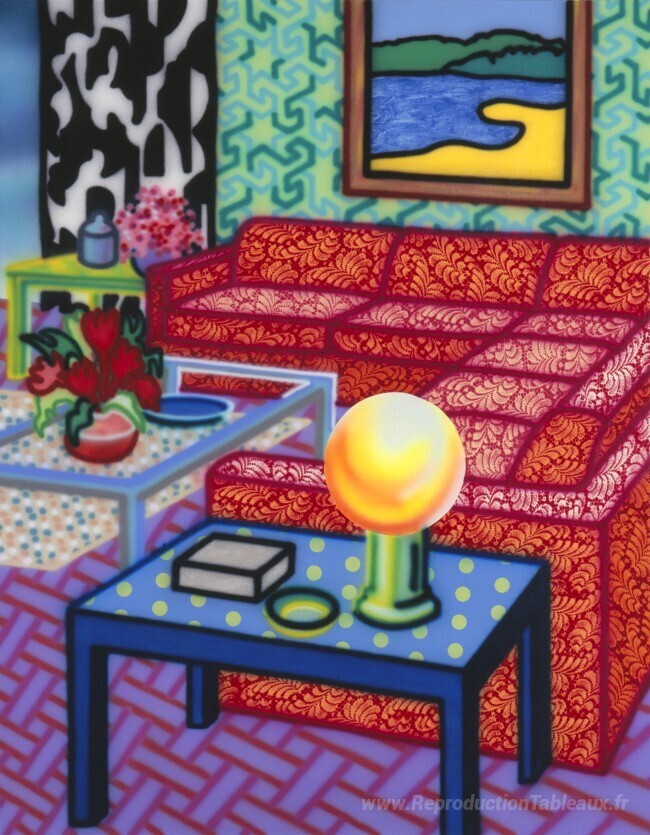 Nous vous proposons une reproduction artisanale sur toile du célèbre tableau 'Paramètre de luxe' de Howard Arkley, provenant du Musée de la Reproduction.