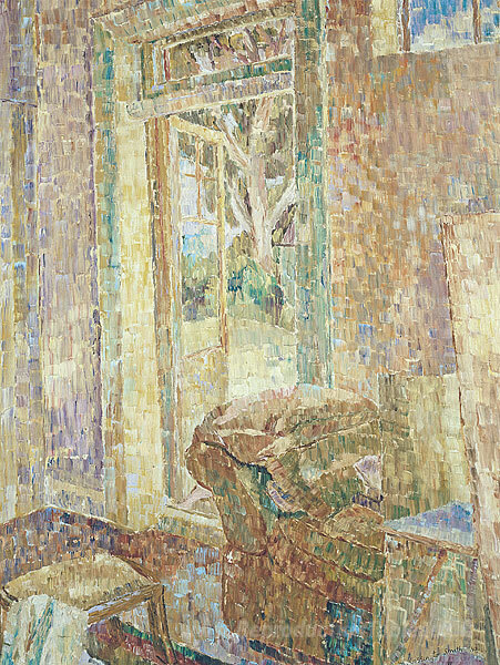 Nous vous proposons une reproduction artisanale sur toile du célèbre tableau 'Porte du jardin' de Grace Cossington Smith, provenant du Musée de la Reproduction.