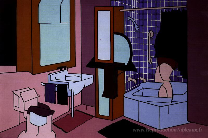 Nous vous proposons une reproduction artisanale sur toile du célèbre tableau 'Salle de bain Chelsea de l'hôtel' de Valerio Adami, provenant du Musée de la Reproduction.