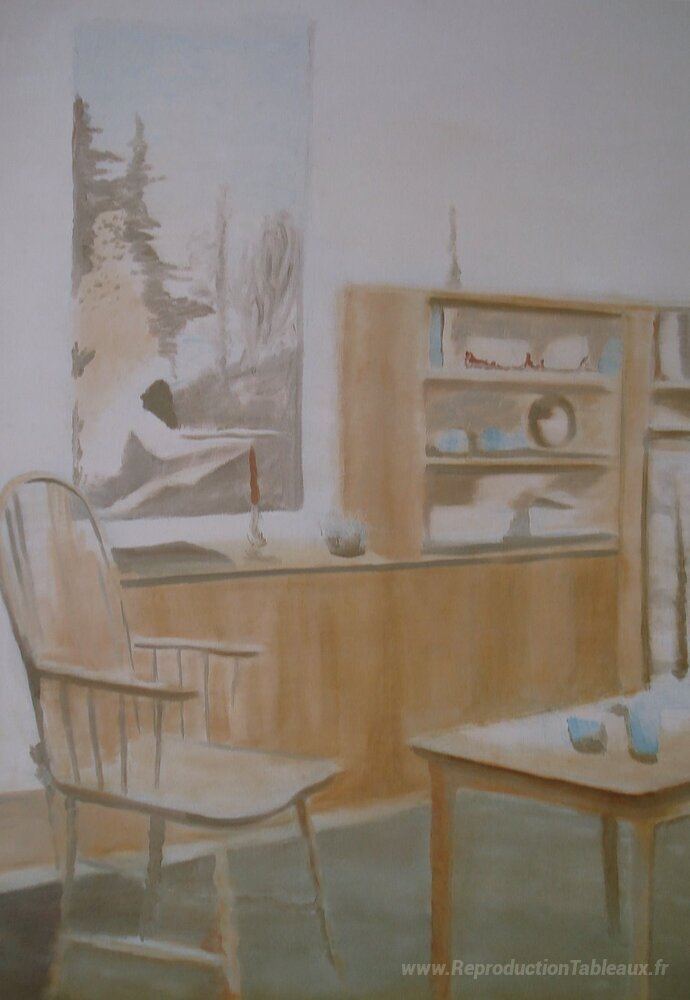 Nous vous proposons une reproduction artisanale sur toile du célèbre tableau 'Salone' de Luc Tuymans, provenant du Musée de la Reproduction.