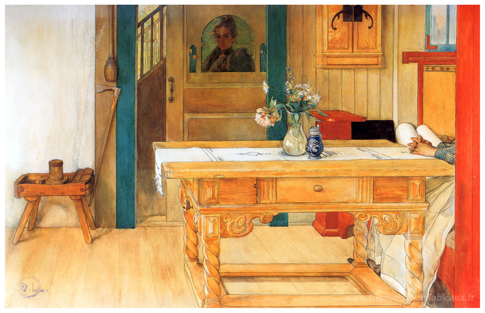 Nous vous proposons une reproduction artisanale sur toile du célèbre tableau 'SIMANDE REST' de Carl Larsson, provenant du Musée de la Reproduction.
