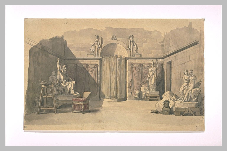 Nous vous proposons une reproduction artisanale sur toile du célèbre tableau 'Un atelier de sculpture' de Pierre-Narcisse Guerin, provenant du Musée de la Reproduction.