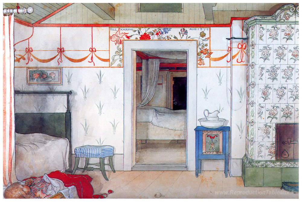 Nous vous proposons une reproduction artisanale sur toile du célèbre tableau 'Winks Quaranta di Brita' de Carl Larsson, provenant du Musée de la Reproduction.