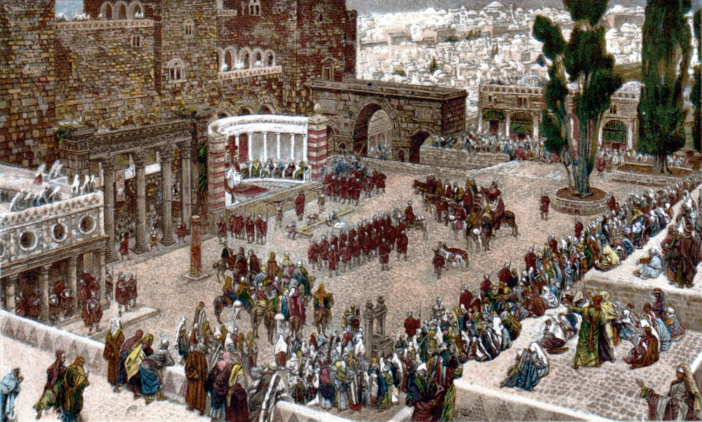 Nous vous proposons une reproduction artisanale sur toile du célèbre tableau 'Forum Pilates' de James Tissot, provenant du Musée de la Reproduction.