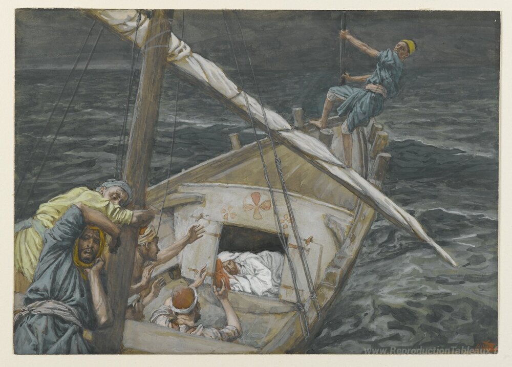 Nous vous proposons une reproduction artisanale sur toile du célèbre tableau 'Jésus dormait pendant la tempête' de James Tissot, provenant du Musée de la Reproduction.