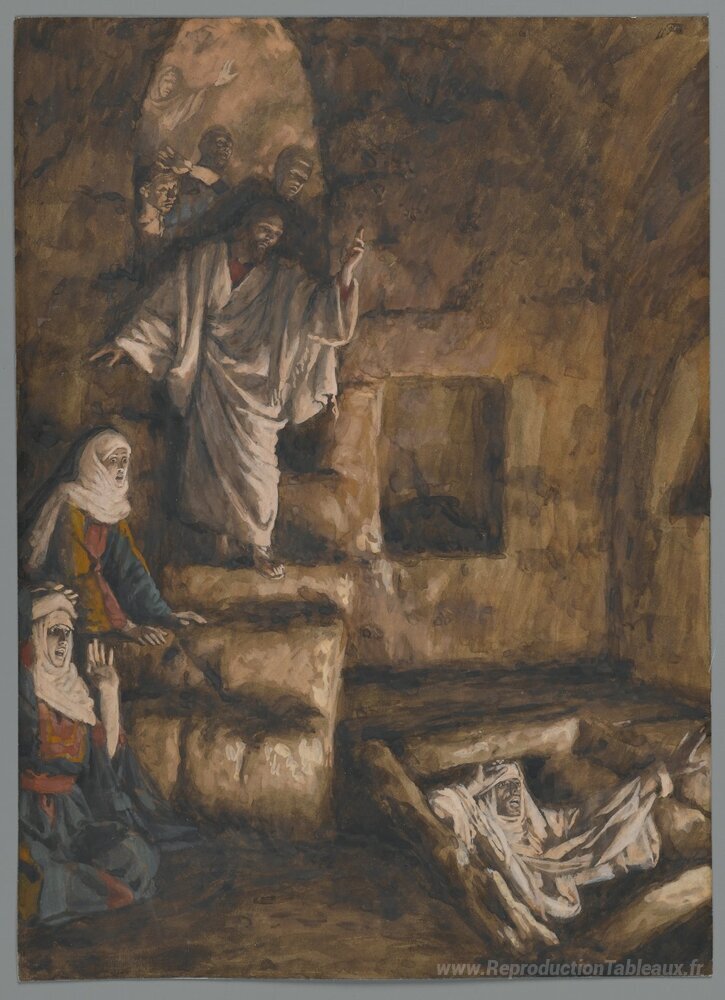 Nous vous proposons une reproduction artisanale sur toile du célèbre tableau 'La résurrection de Lazarus (la Résurrection de Lazare)' de James Tissot, provenant du Musée de la Reproduction.