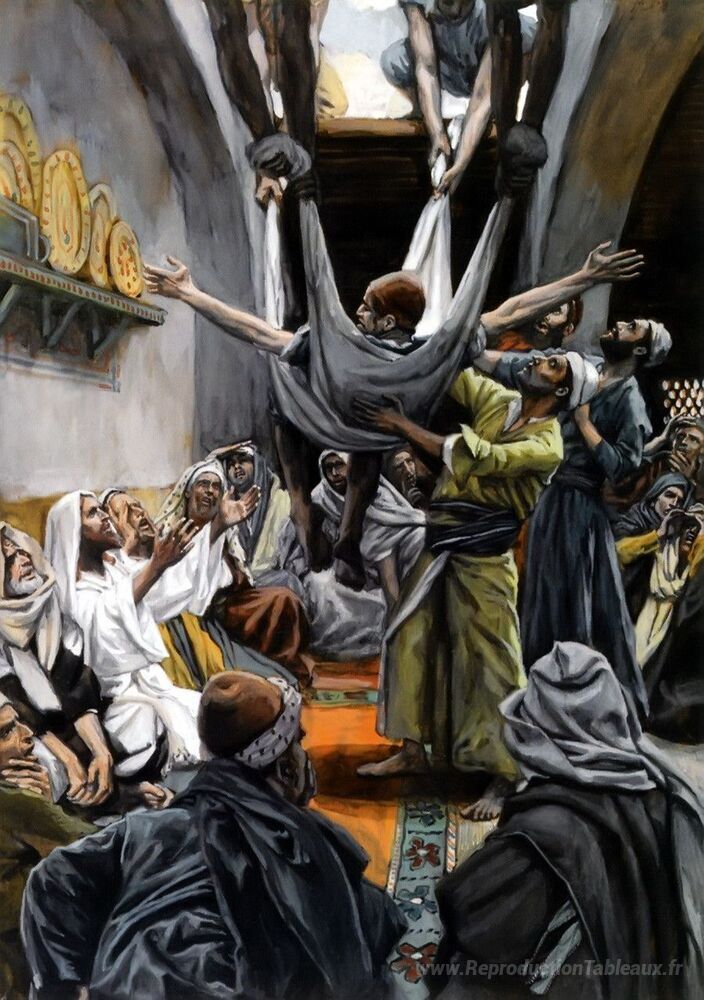 Nous vous proposons une reproduction artisanale sur toile du célèbre tableau 'L'homme avec la paralysie abaissée à Christ' de James Tissot, provenant du Musée de la Reproduction.