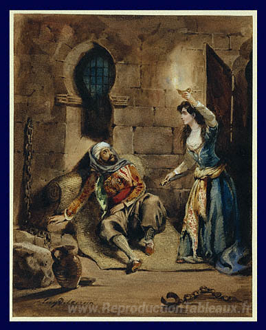 Nous vous proposons une reproduction artisanale sur toile du célèbre tableau 'Épisode du corsair par Lord Byron' de Eugene Delacroix, provenant du Musée de la Reproduction.